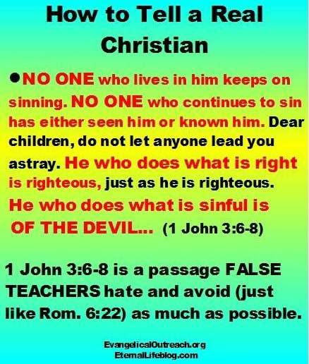 But now that YOU HAVE BEEN SET FREE FROM SIN AND HAVE BECOME SLAVES TO GOD, the benefit you reap leads to holiness, and the result is eternal life. (Rom 6:22)KEY - 1 John 3:6-8 (jpg)