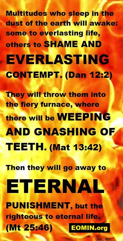 In a similar way, Sodom and Gomorrah and the surrounding towns gave themselves up to sexual immorality and perversion. They serve as an example of those who suffer the punishment of eternal fire. (Jude 7)That verse refutes both soul sleep and annihilation of the wicked dead. How? Because the Sodomites, who were killed with burning sulfur raining down upon them (Gen. 19) - which was approximately 2,000 years before Jude wrote that passage, were still suffering. For them to be suffering pain, in eternal fire, shows they were conscious and, as a consequence, there was no soul sleep for them either. Jude 7 is another blow to both the Seventh Day Adventist and Jehovah's Witness doctrines of soul sleep and annihilation of the wicked dead! Here is yet another passage showing the similar truth: