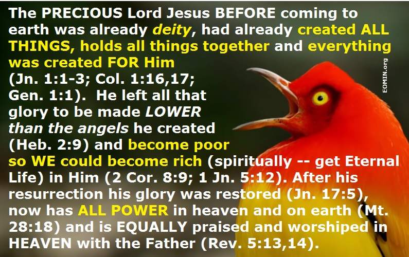 For by him all things were created: things in heaven and on earth, visible and invisible, whether thrones or powers or rulers or authorities; all things were created BY him and FOR him. (Col 1:16)Yet scripture also teaches: