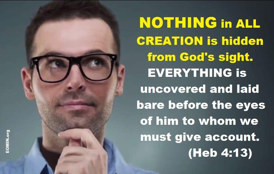Nothing in all creation is hidden from God's sight. Everything is uncovered and laid bare before the eyes of him to whom we must give account. (Heb. 4:13)