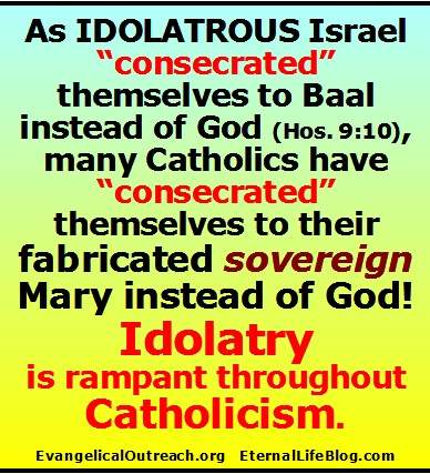 ...But when they came to Baal Peor, they consecrated themselves to that shameful idol and became as vile as the thing they loved. (Hosea 9:10)Yes, Catholics consecrate themselves to their fantasy "shameful" Mary idol!